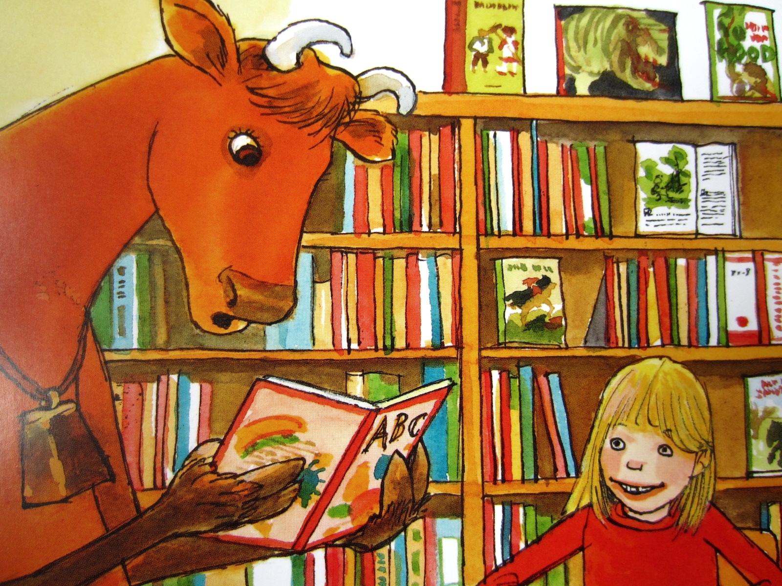 Statt mit den anderen Kühen im Stall zu stehen, geht Mama Muh lieber in die Bibliothek, um dort lesen zu lernen. Überglücklich nimmt sie ein paar Bücher mit auf den heimischen Bauernhof. Die Krähe wundert sich über Mama Muhs neueste Aktivität und muss natürlich nachforschen, was die Kuh da so treibt. Mama Muh ist gerade ganz begeistert von Pippi Langstrumpf, die so stark ist, dass sie sogar ein Pferd tragen kann, als Krähe bei ihr auftaucht. Diese findet Lesen völlig unnötig, wird aber doch neugierig, als Mama Muh ihr erzählt, dass ALLES in Büchern zu finden ist. Etwa auch, warum die Milch weiß ist, wo doch das Gras grün ist? Ob die beiden darauf die Antwort wohl finden werden?