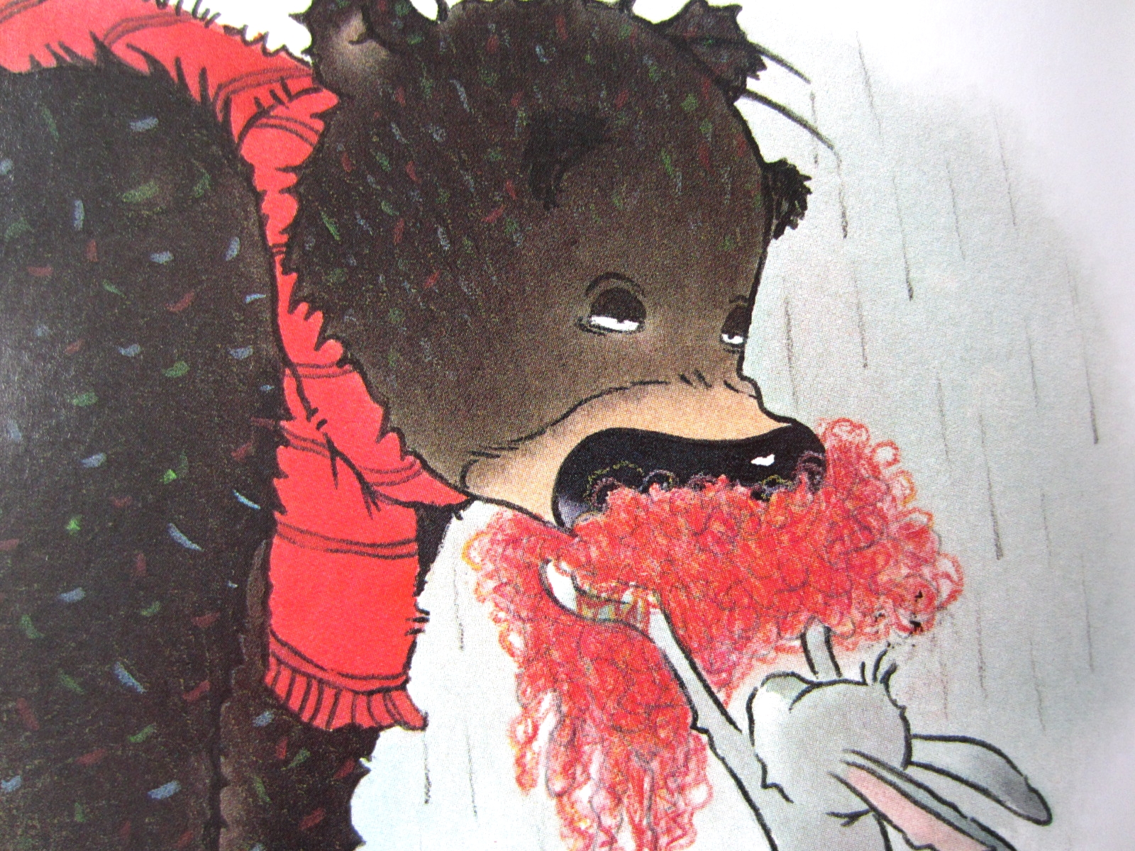 Als Paulchen merkt, dass etwas ganz und gar nicht stimmt, hat sich seine Mütze schon in einen langen Faden verwandelt. Groß ist sein Sorge, dass der Papa mit ihm schimpfen wird und so fragt er zunächst die anderen Tiere, ob sie ihm nicht helfen können. Aber kaputt ist kaputt und den einzig nützlichen Ratschlag erhält er schließlich vom Hasen: Zu seinem Vater gehen und ihm einfach erzählen was passiert ist…