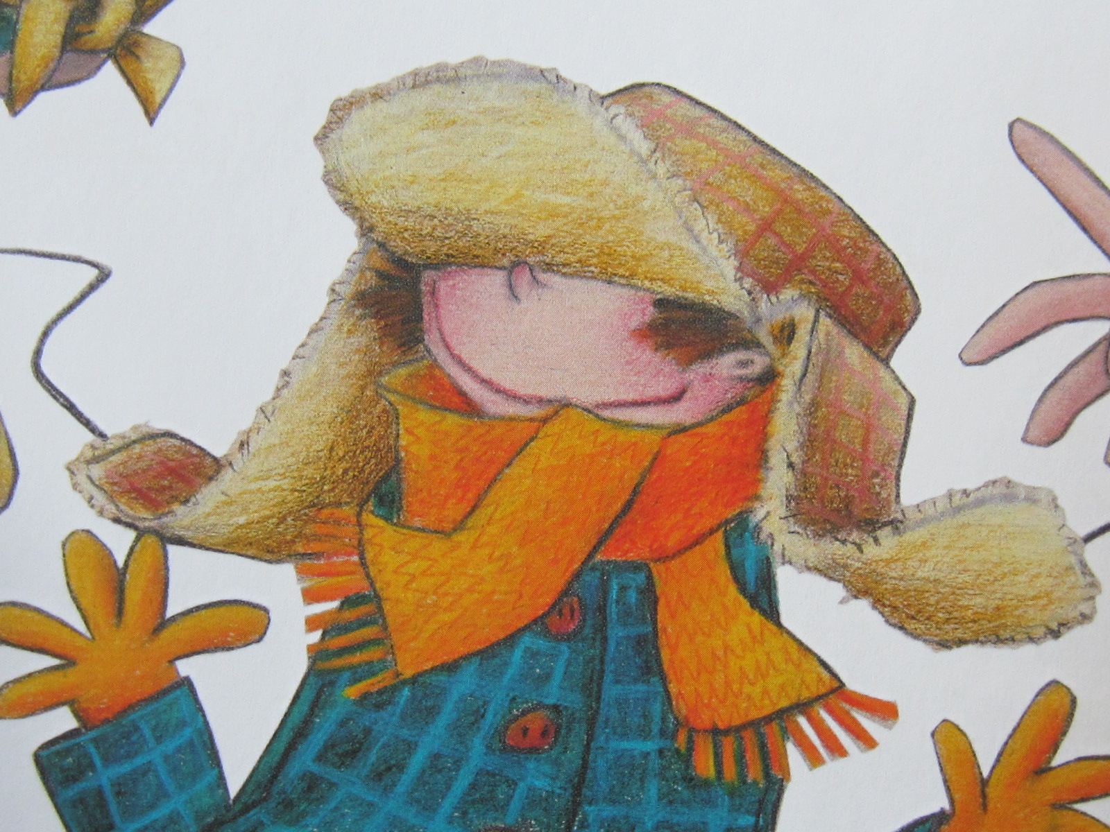 Passend zum stürmischen Winterwetter ist der kleine Junge warm angezogen. Welche Farbe hat sein Schal und die Handschuhe? Der zweite Buchstabe wird benötigt und gehört an die 19. Stelle des Lösungswortes.